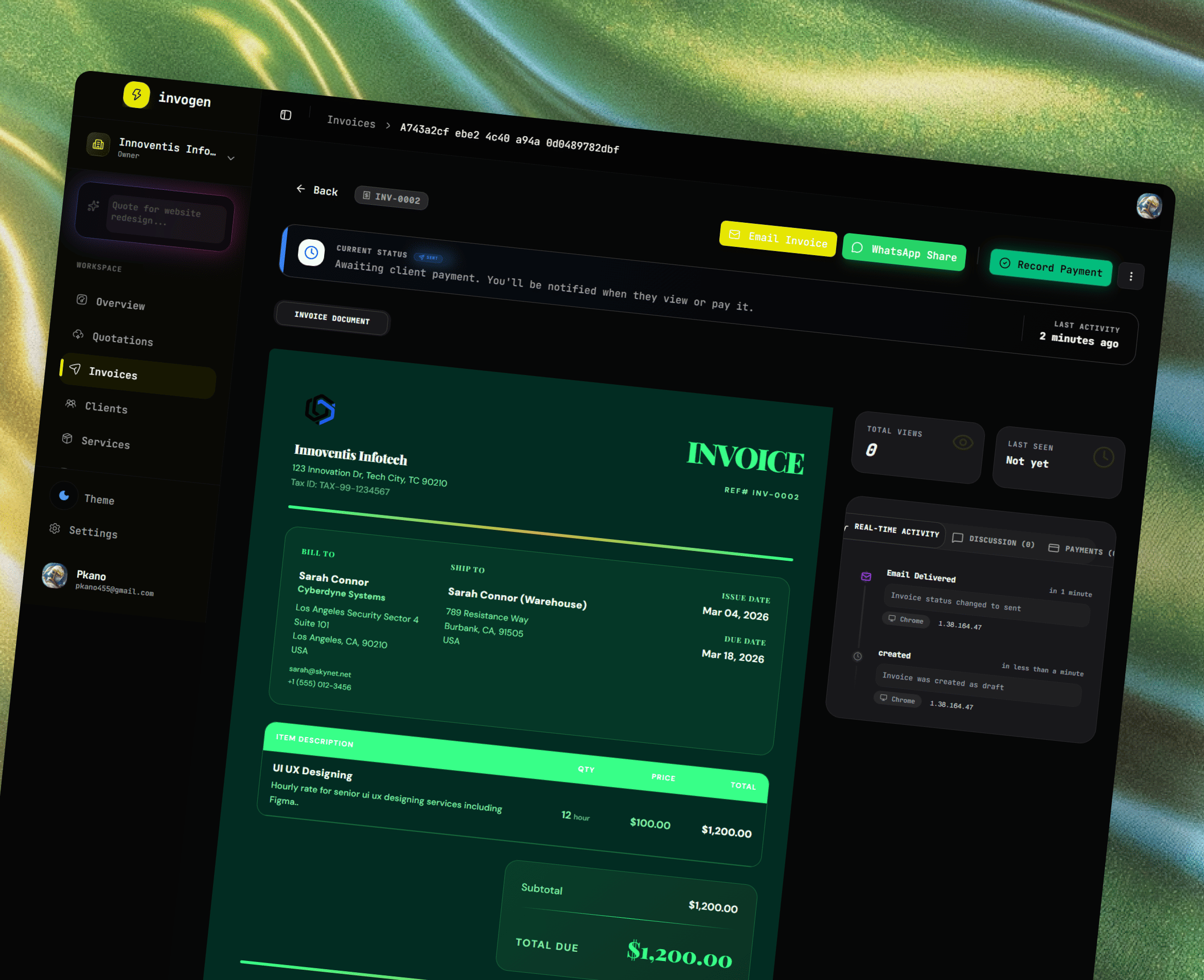 Our intuitive drag-and-drop builder lets you create professional invoices in seconds. Customize every detail with ease.
